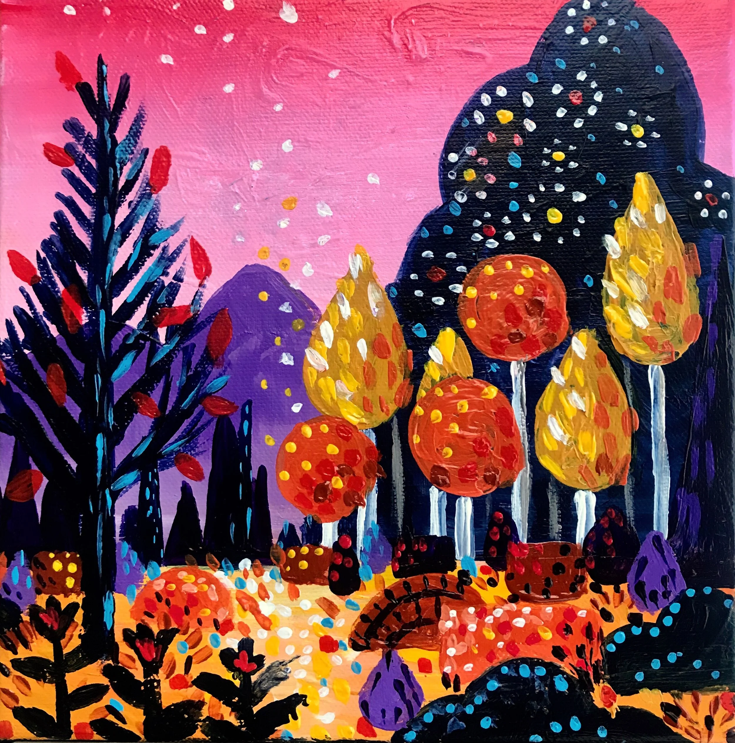 Mural for Yoga Baum, a yoga studio in Louisville, KY, inspired by the artwork of Sleeping Beauty, The Last Unicorn, and Miyazaki films.